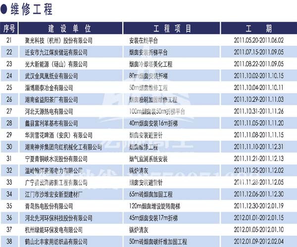 宏順建設工程有限公司是國家批準成立的專業(yè)高空作業(yè)企業(yè):承攬過(國內(nèi).國外)煙囪新建、煙囪防腐、磚煙囪新建、煙囪改造、煙囪維修、煙囪脫硫防腐、煙囪拆除加高、煙囪滑膜等高空作業(yè)工程。具有“不搭腳手架 、 不需要停產(chǎn)”施工特點。